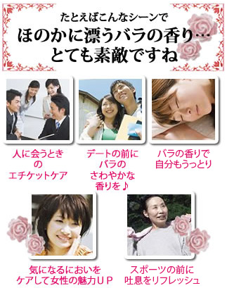 口臭をバラの香りにしてくれるだけでなく、女性ホルモンにも働きかけてくれるんです。